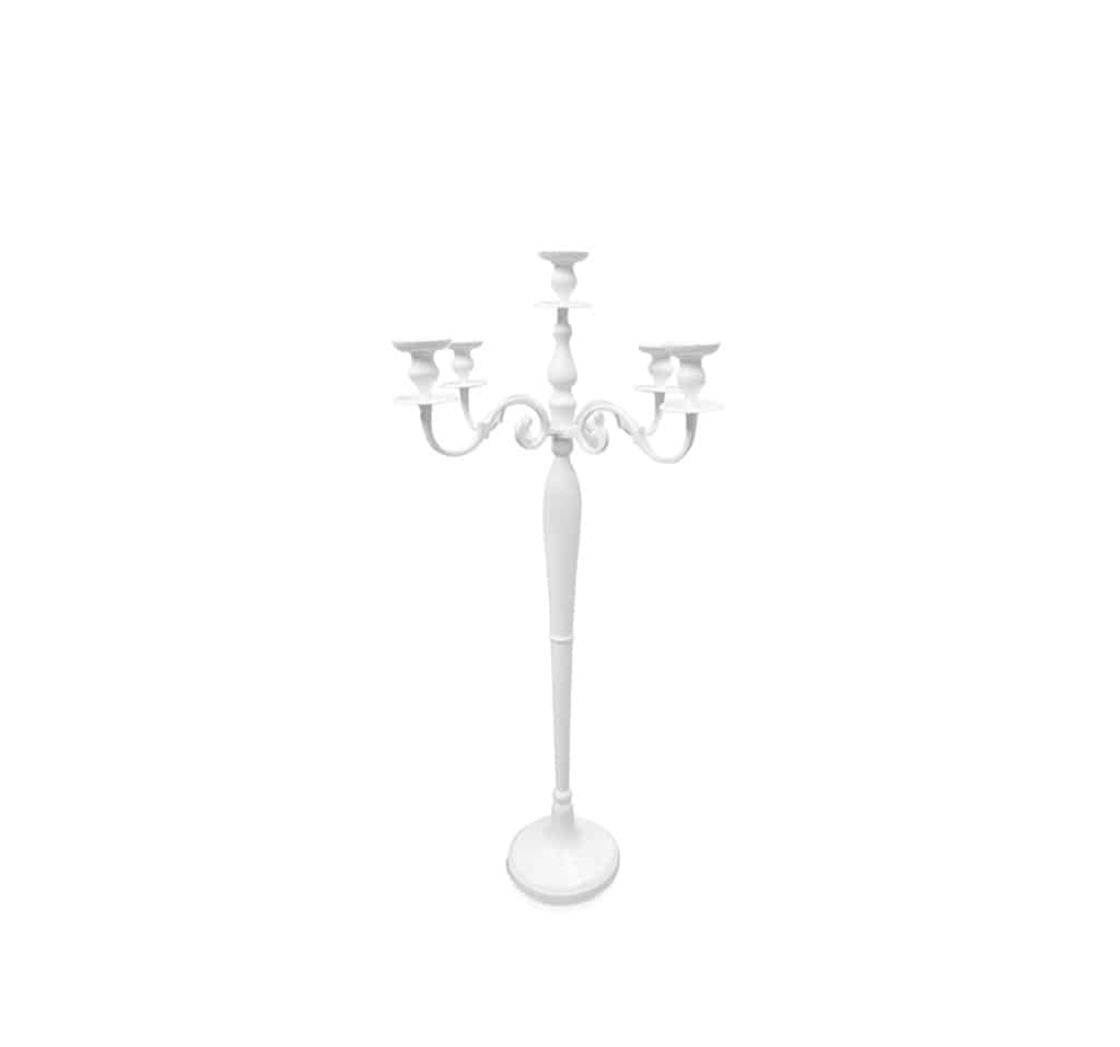 Candelabro a 5 fiamme in acciaio verniciato bianco.