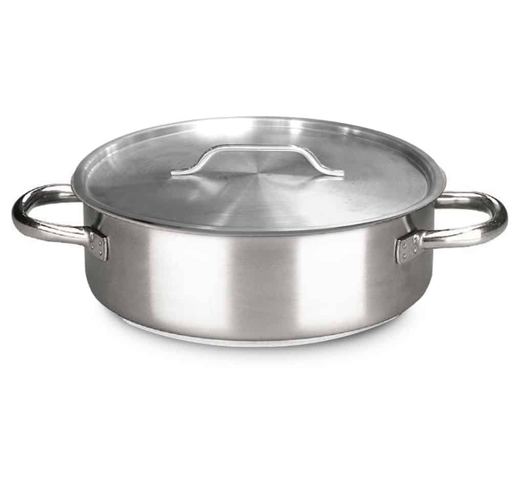 Casseruola bassa a 2 manici in acciaio inox, adatta all’induzione, con coperchio.