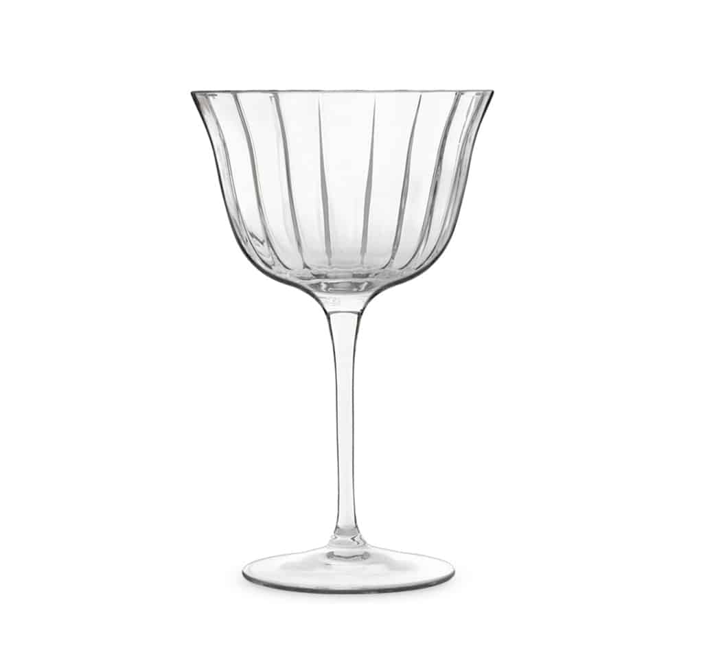 Coppa Decò Fizz in cristallo sfaccettato trasparente.