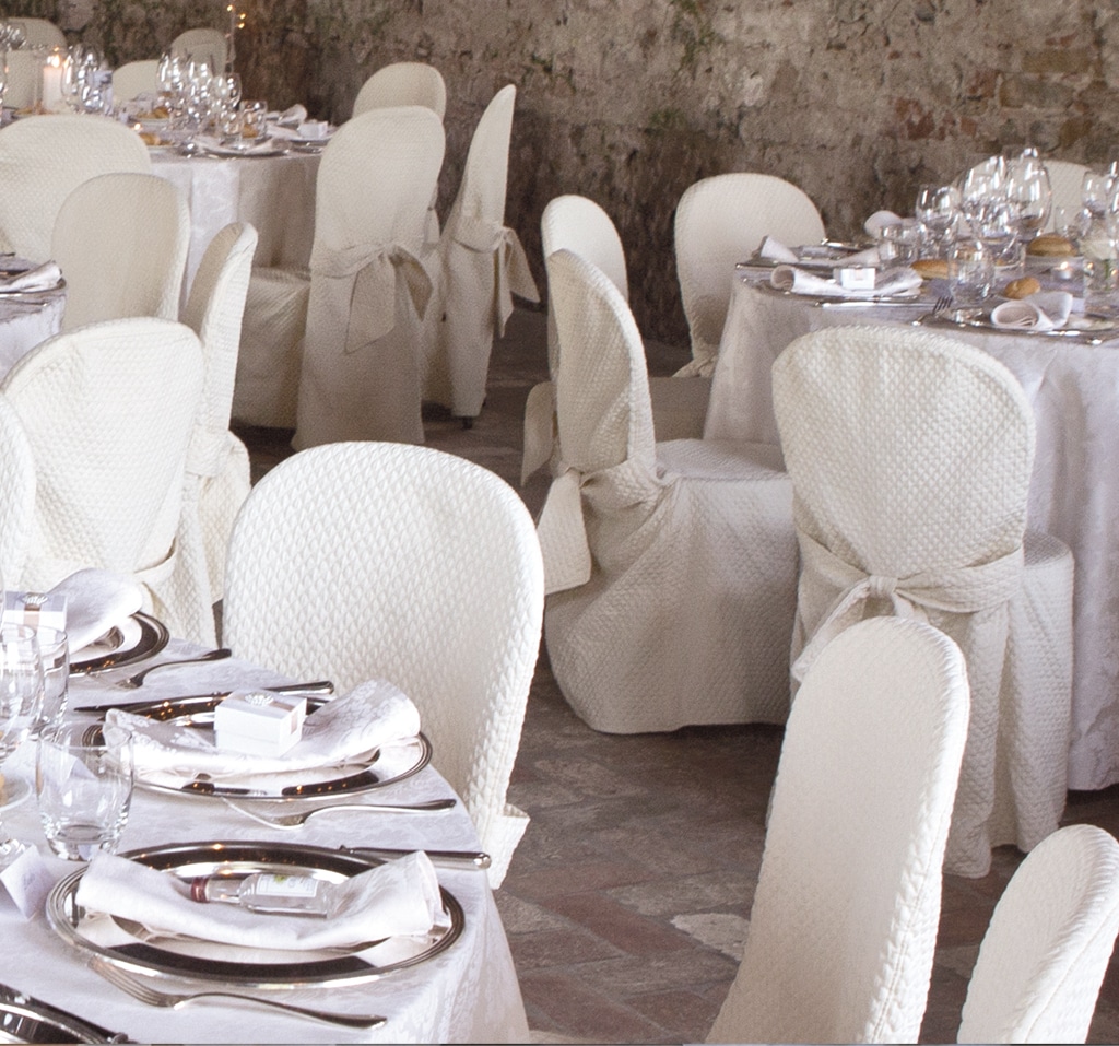 Coprisedia in tessuto trapuntato avorio no stiro.