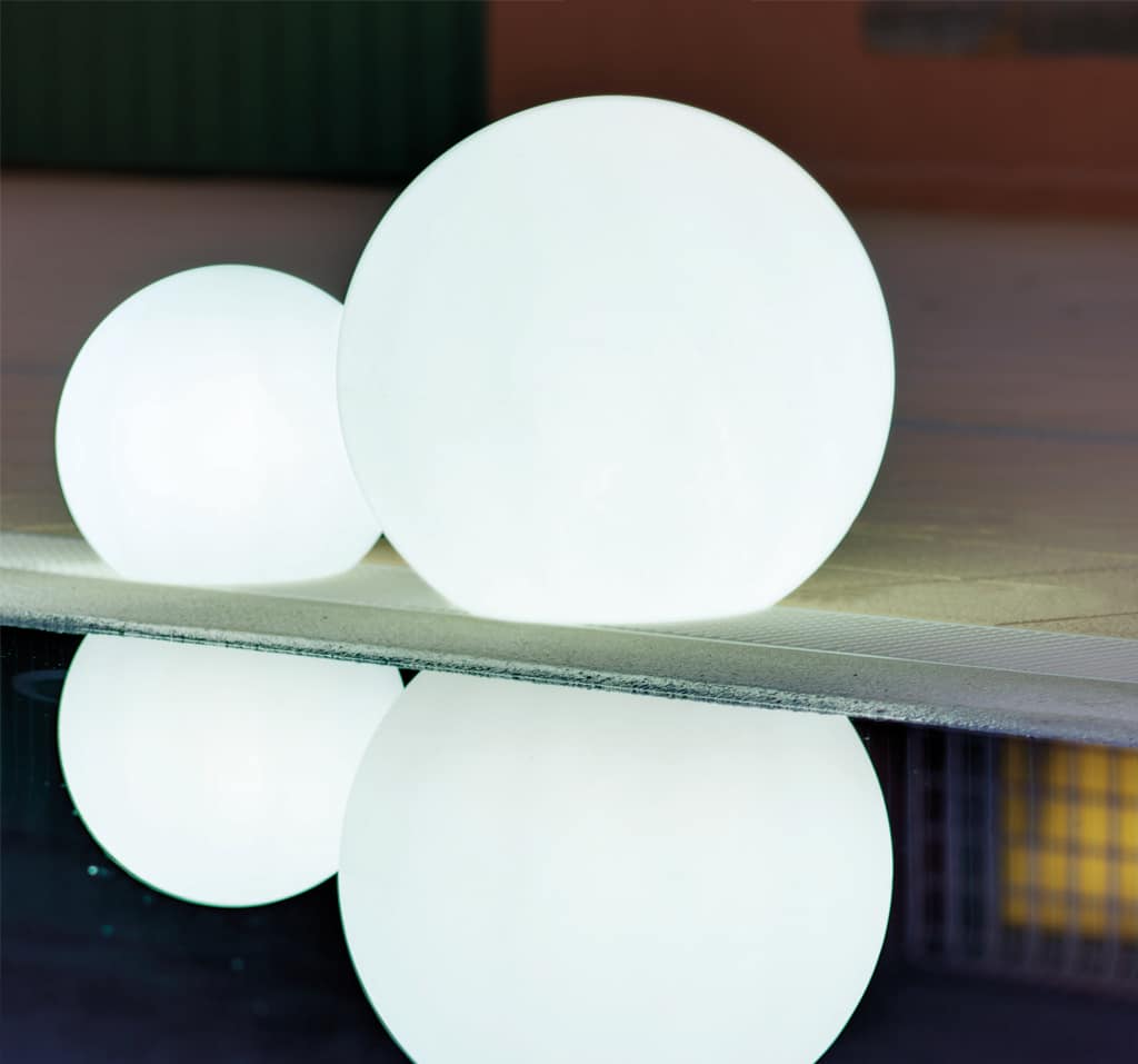 Lampada Globe Ø 50 cm a LED RGB multicolor. Da noleggiare in abbinamento a Telecomando per cambio colore lampade LED.