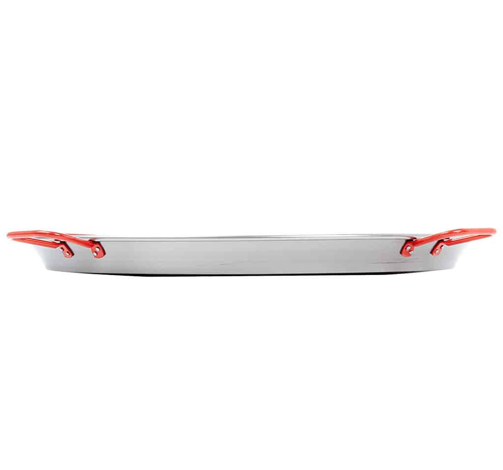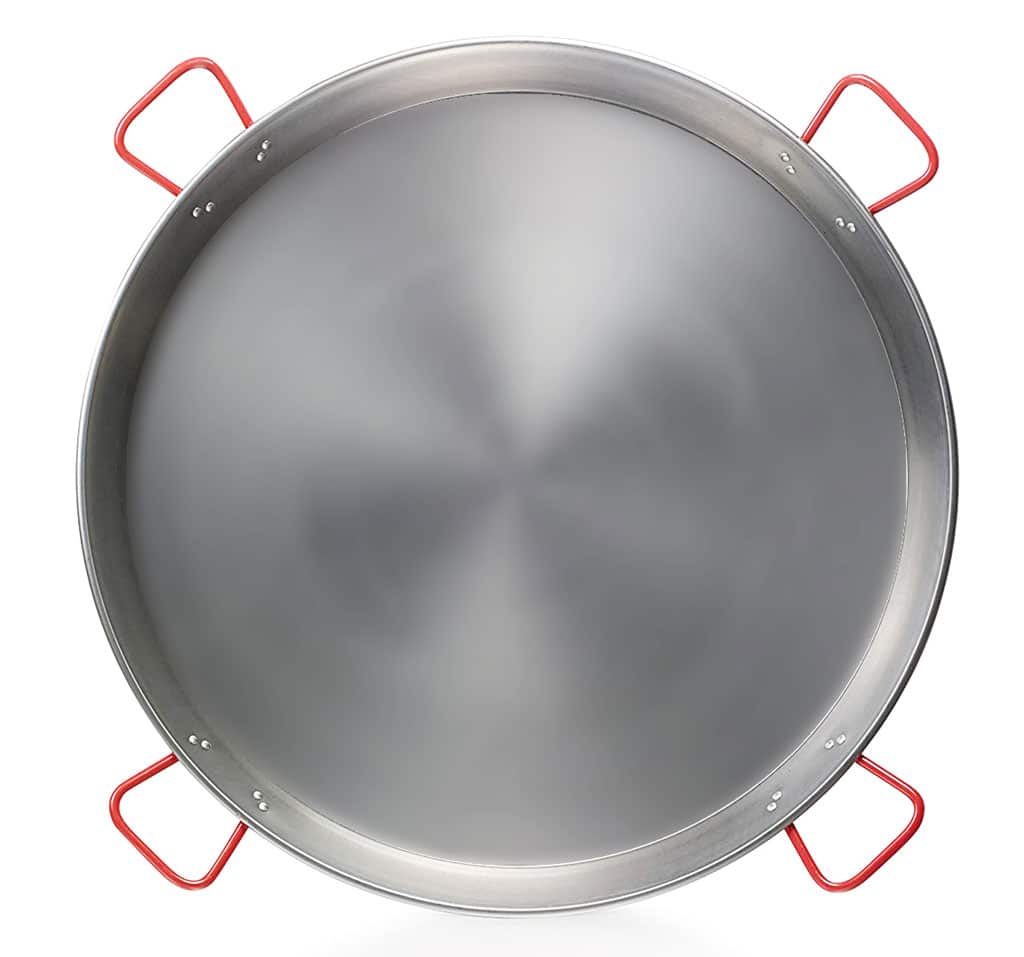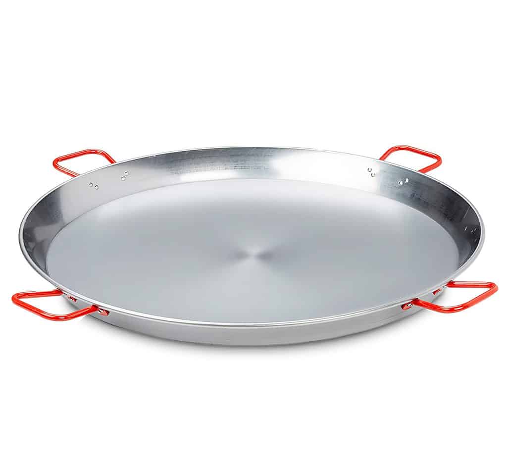 Paellera a 4 manici in acciaio inox. Da utilizzare in abbinata a Fornello bruciatore per paella Ø80 oppure Fornello bruciatore per paella Ø90