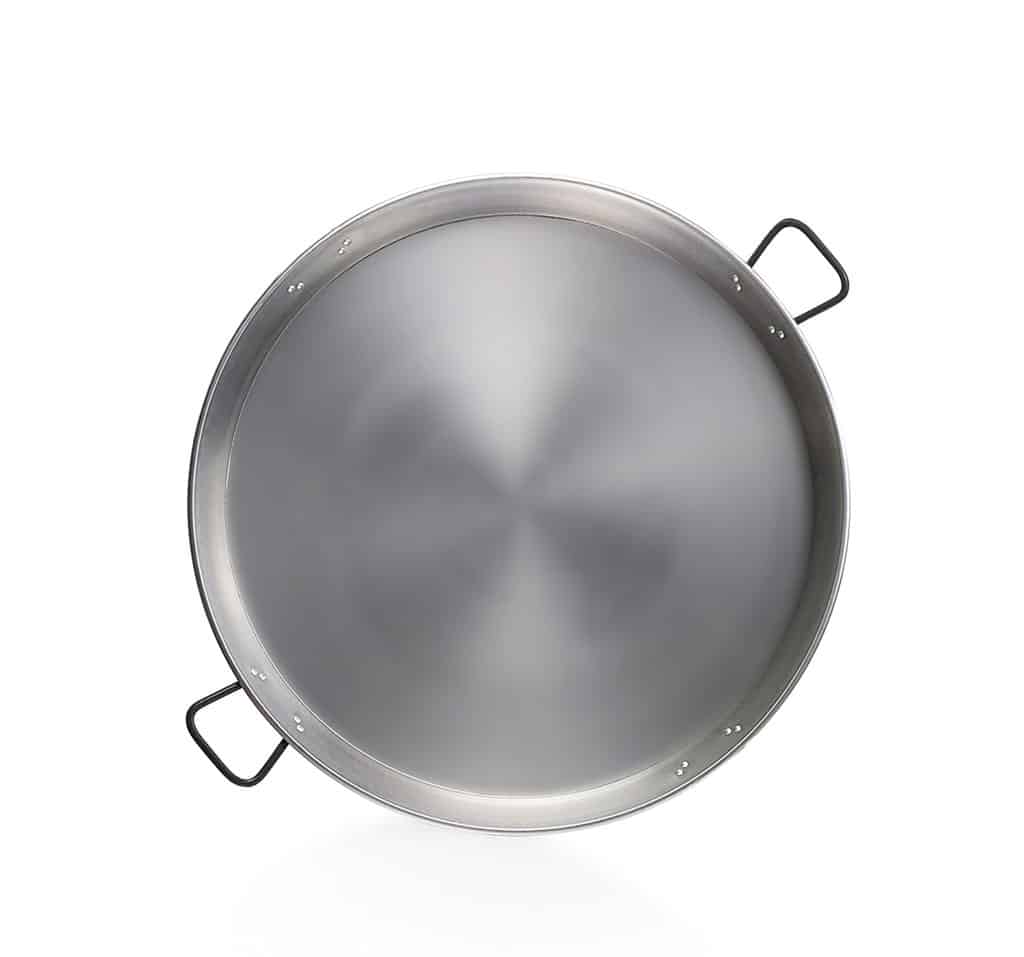 Paellera a 2 manici in acciaio inox. Da utilizzare in abbinata a Fornello bruciatore per paella Ø60 oppure Fornello bruciatore per paella Ø80 oppure Fornello bruciatore per paella Ø90