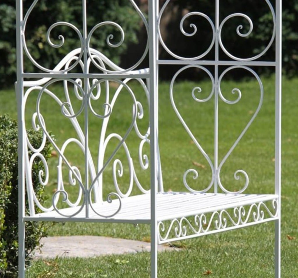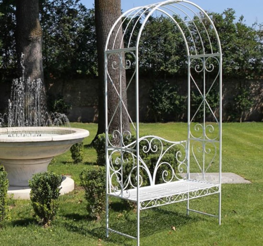 Panchina vintage con struttura in metallo bianco completo di arco.