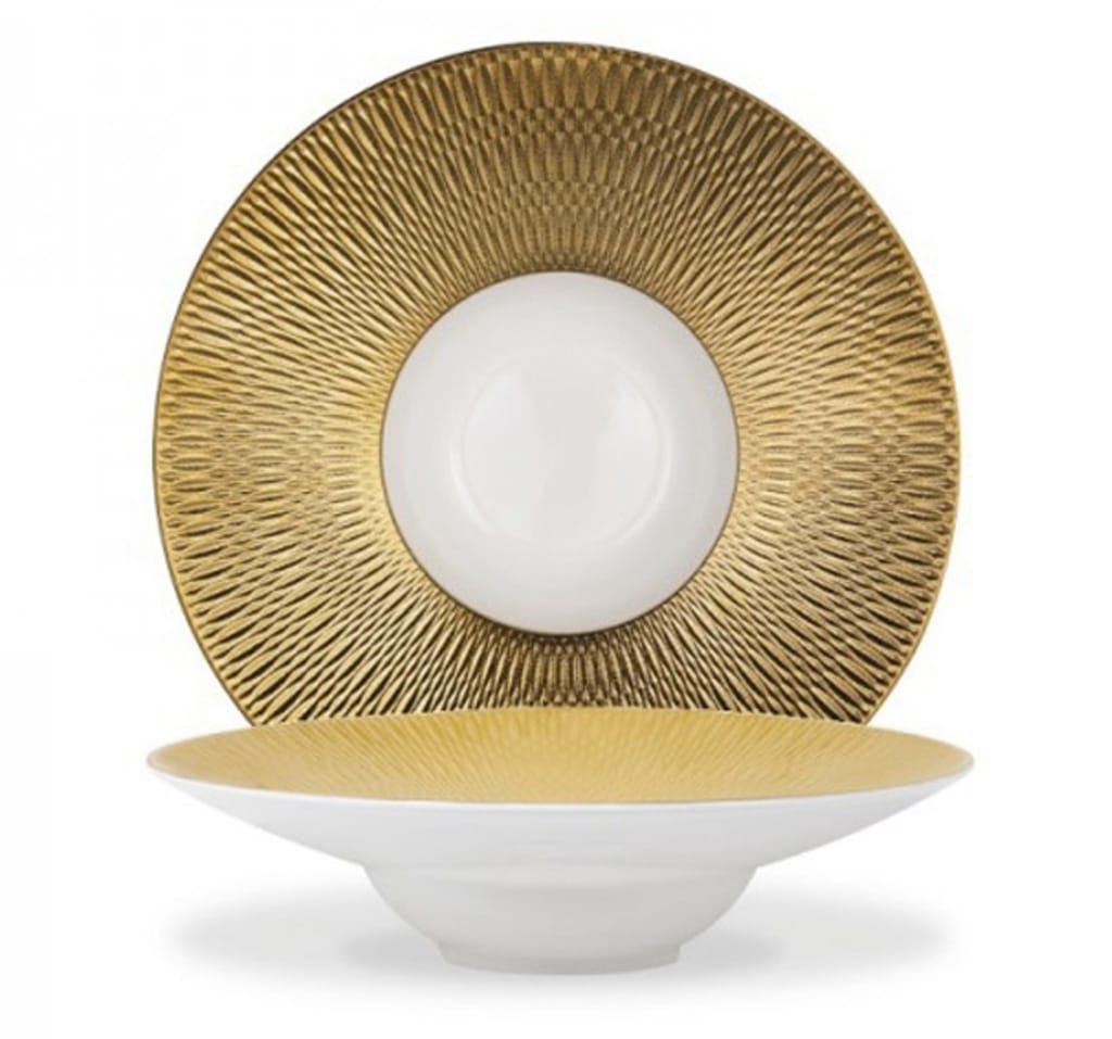 Piatto Gourmet Deras Le Coq bianco falda oro