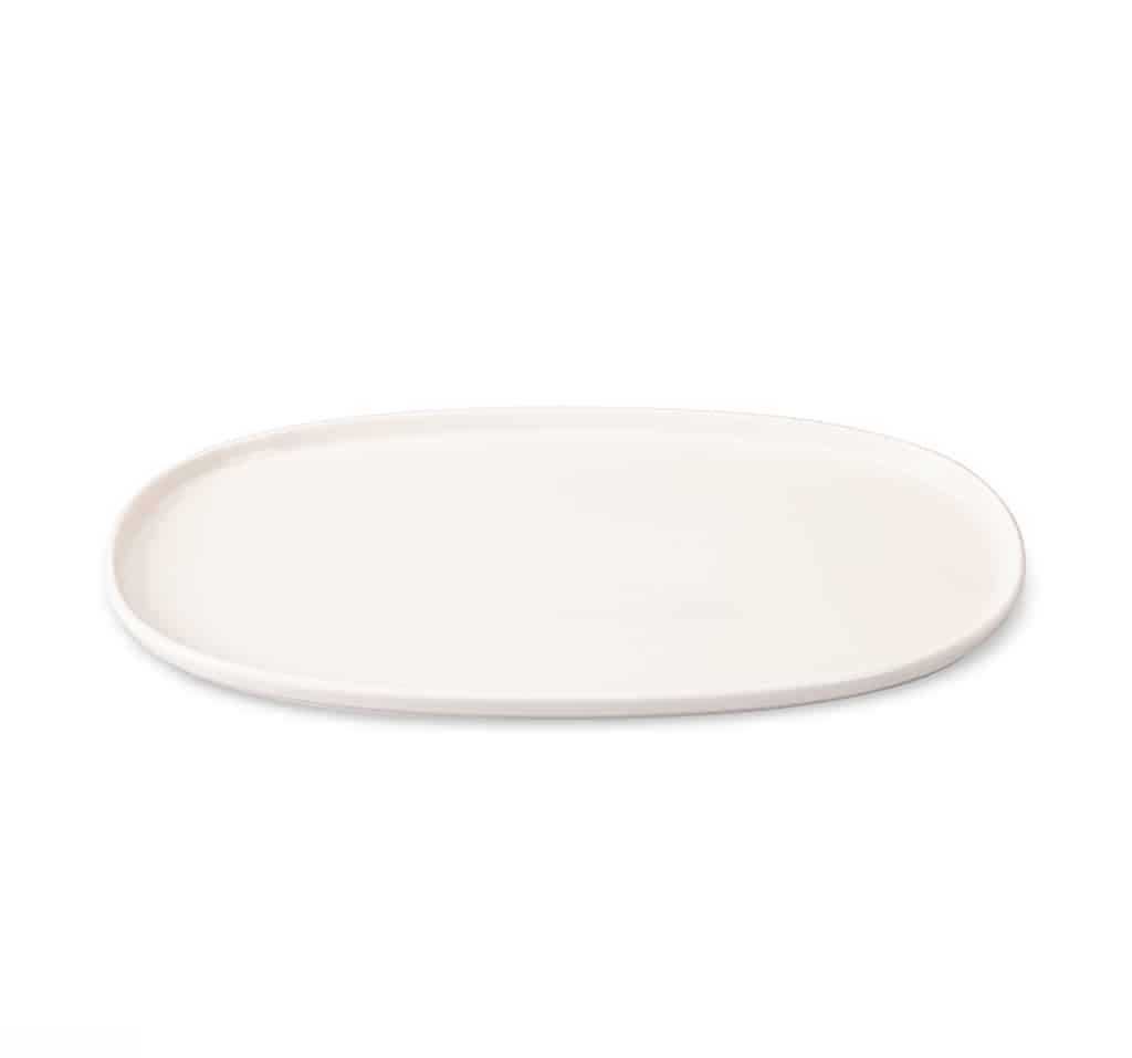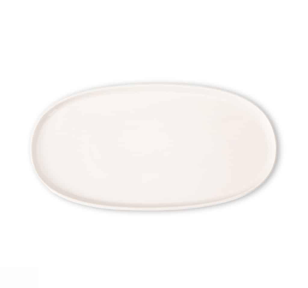 Piatto ovale con bordo Aura 30×15 cm in porcellana avorio.
