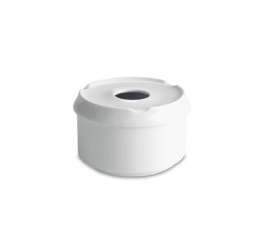Posacere rotondo antivento in ceramica bianca.