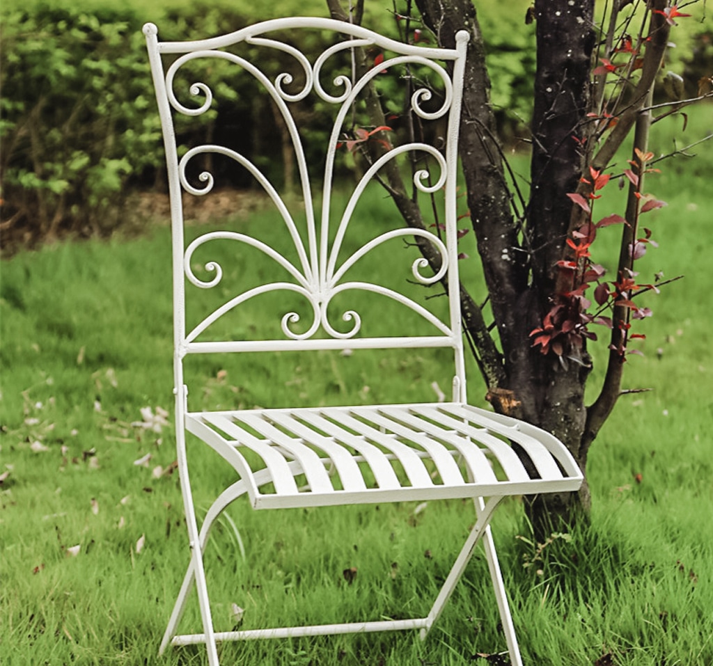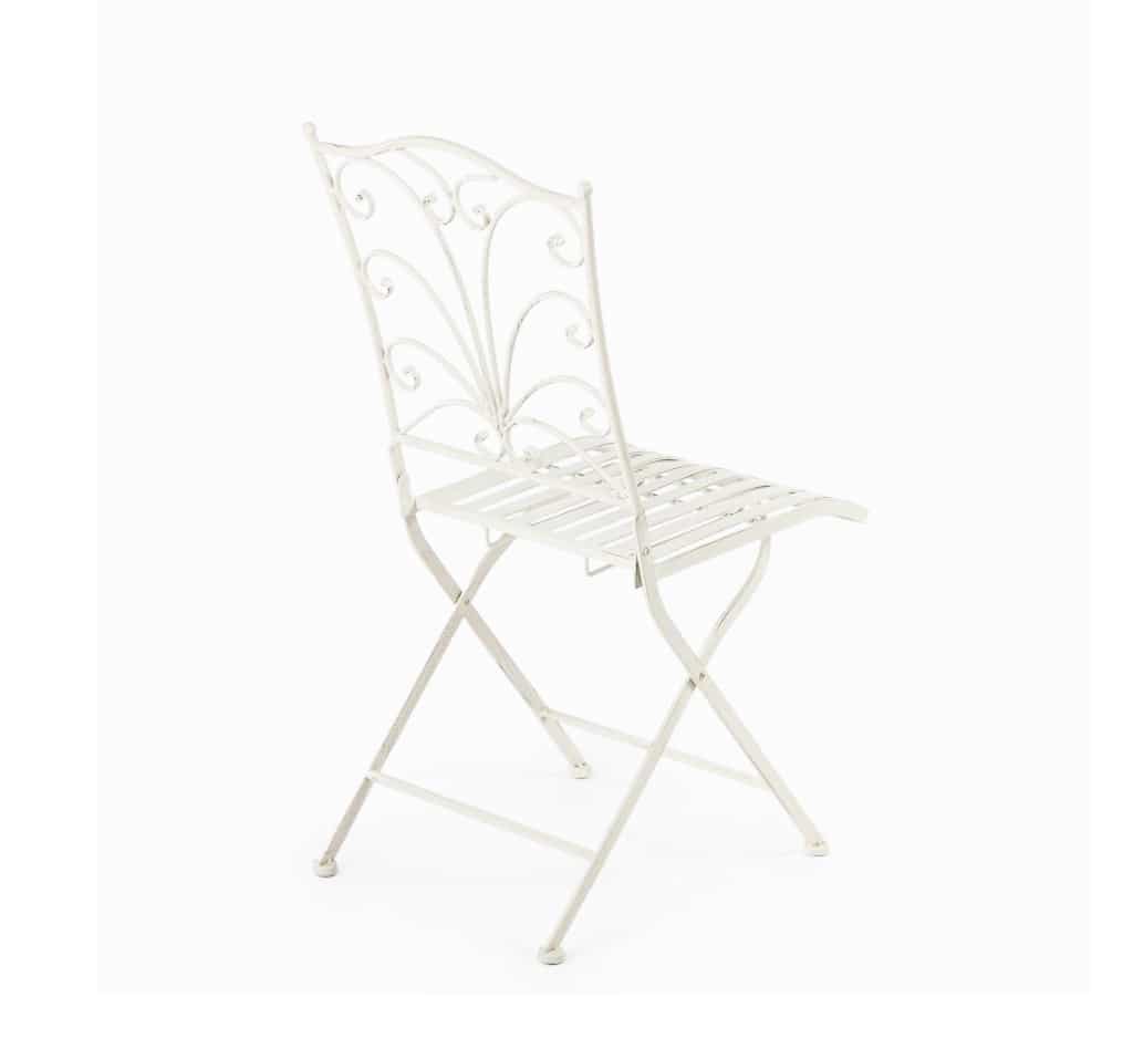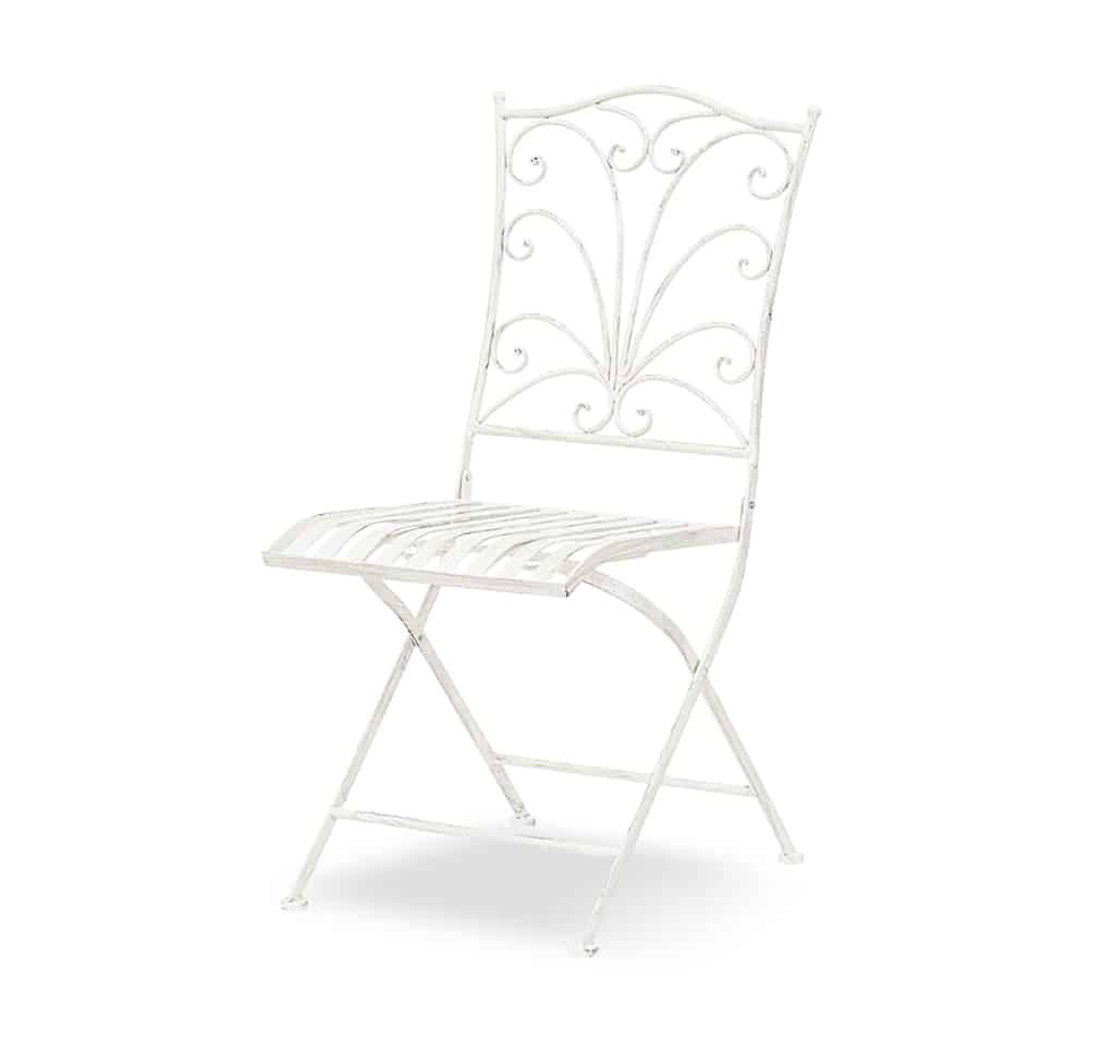 Sedia da bistrot pieghevole Jardin, in stile retrò, con struttura in metallo anticato bianco.