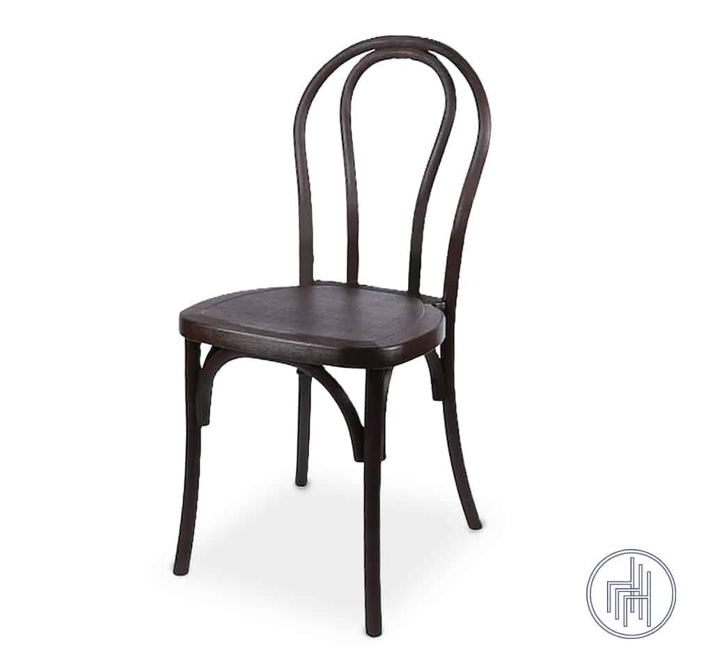 Sedia Vienna impilabile, in polipropilene effetto legno tinta noce scuro.