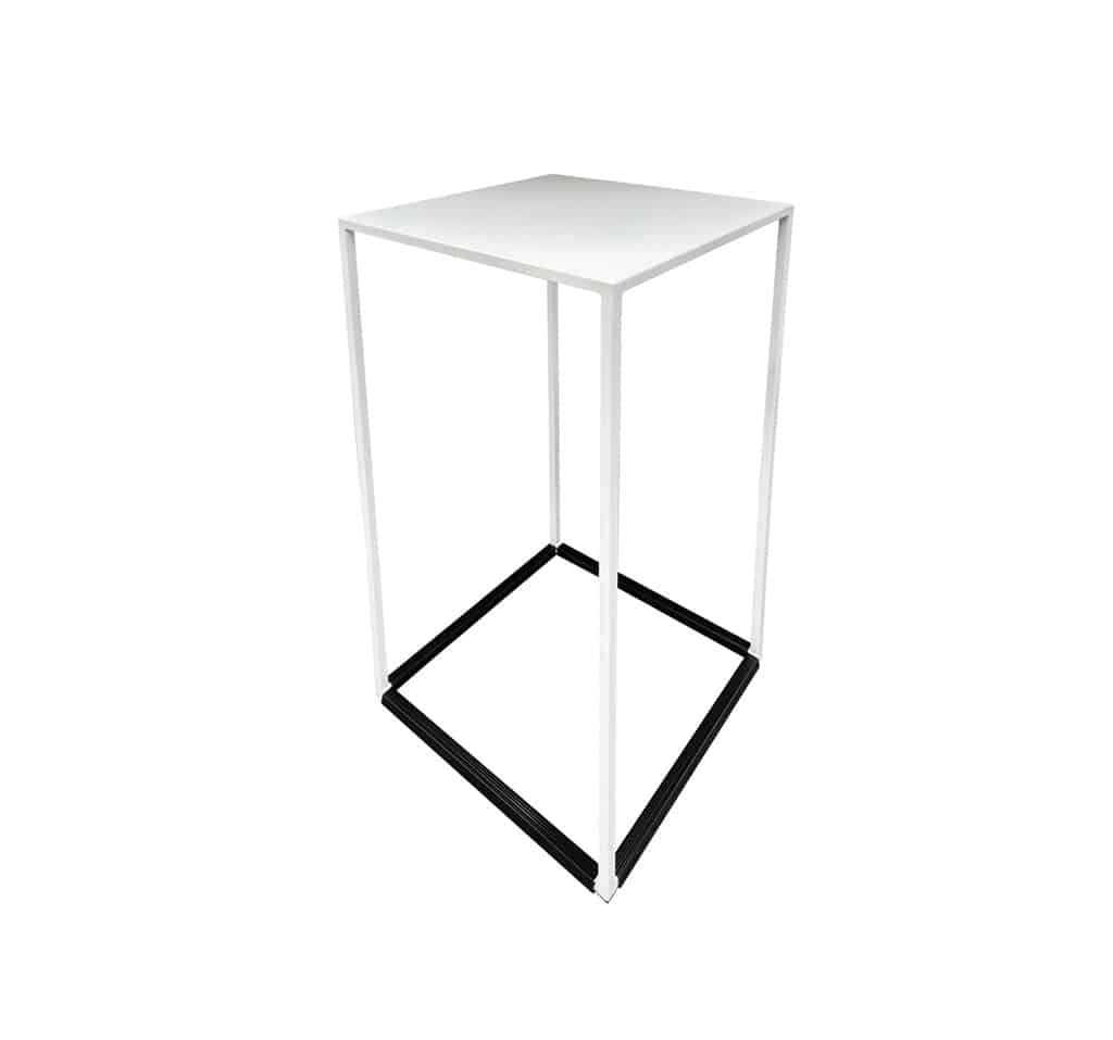 Set Sky in metallo verniciato bianco, composto da un tavolo e 4 sgabelli alti.