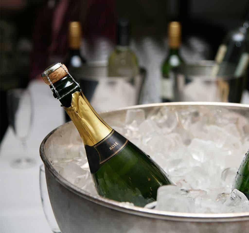 Spumantiera rotonda in acciaio inox con base.