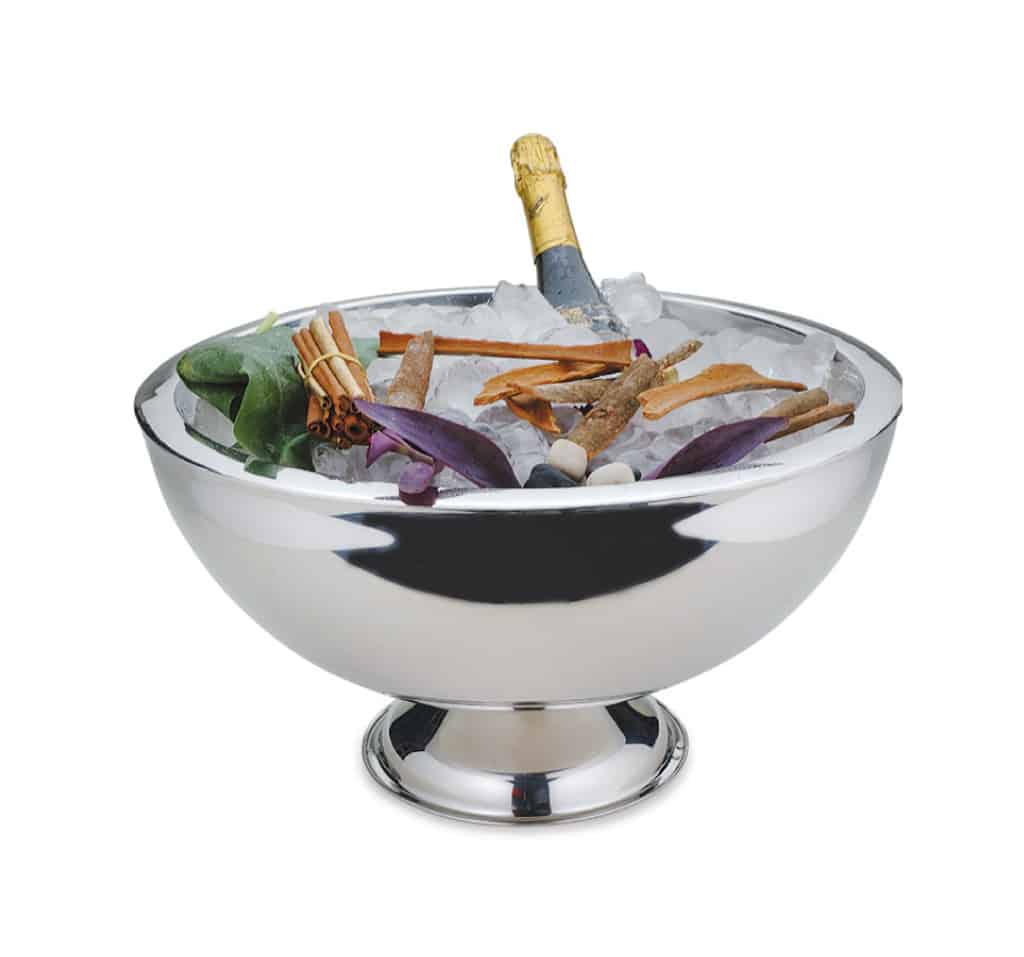 Spumantiera termica rotonda in acciaio inox con base.
