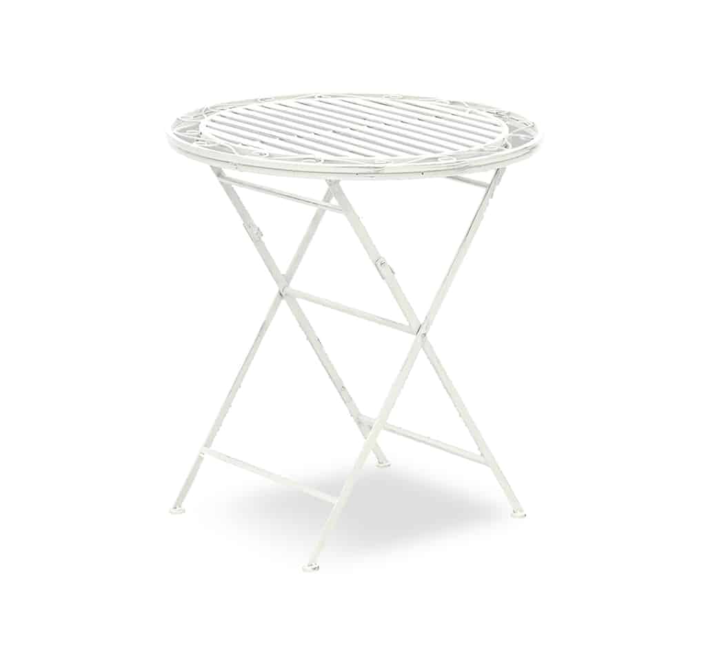 Tavolino da bistrot pieghevole Jardin, in stile retrò, con struttura in metallo anticato bianco.