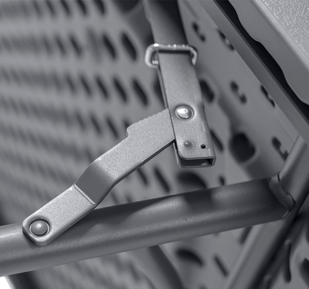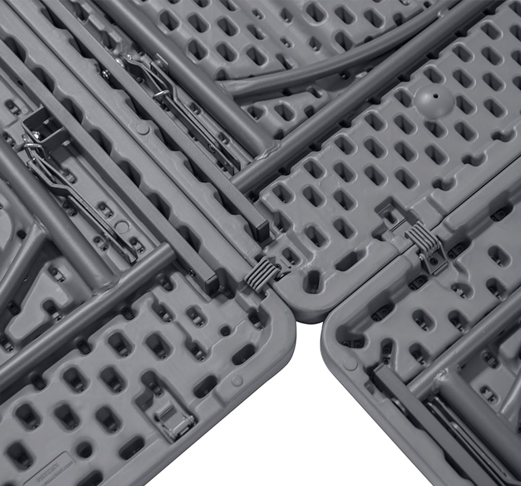 Struttura con verniciatura a polvere resistente agli urti e all’umidità e piano con con protezione anti-uv. Agganciabile sul lato corto. Peso massimo consigliato: 408 kg. Capacità tavolo: 6 persone.