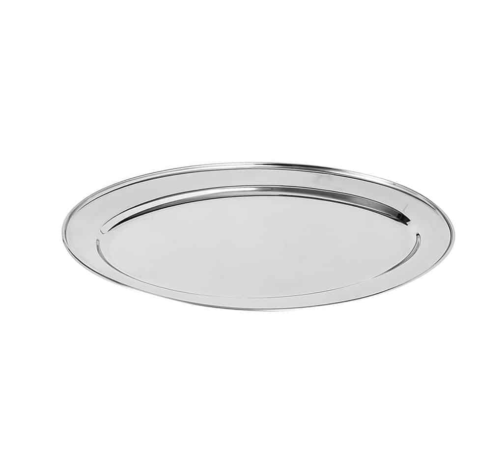 Vassoio ovale in acciaio inox.